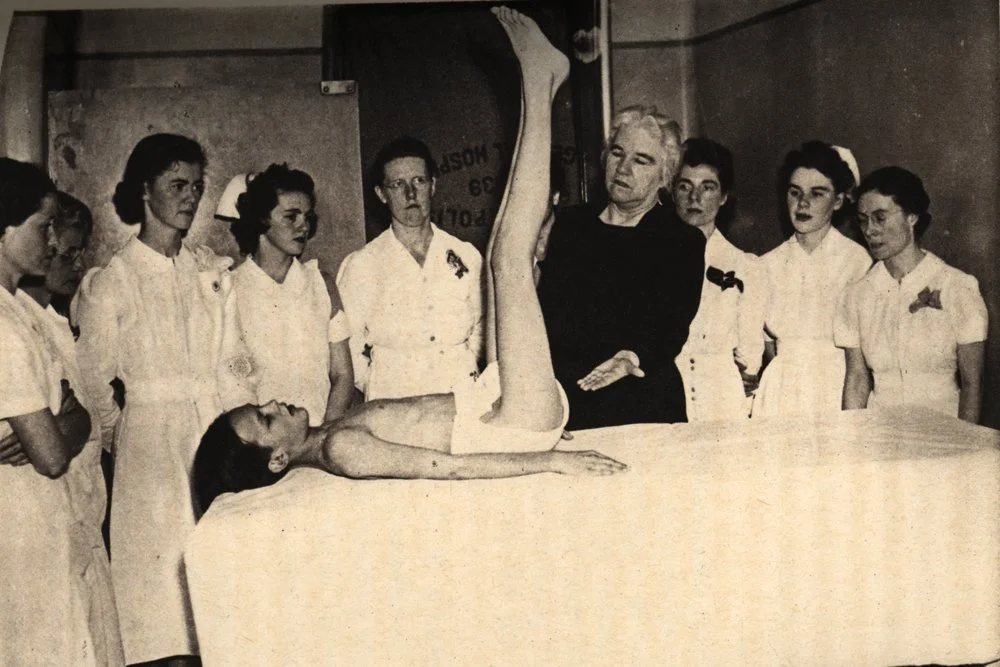 Kenny rejected the prevailing wisdom. She used hot compresses to reduce pain and muscle spasms, followed by careful movement to restore function. She believed that rehabilitation through activity, not immobility, was the key to recovery.